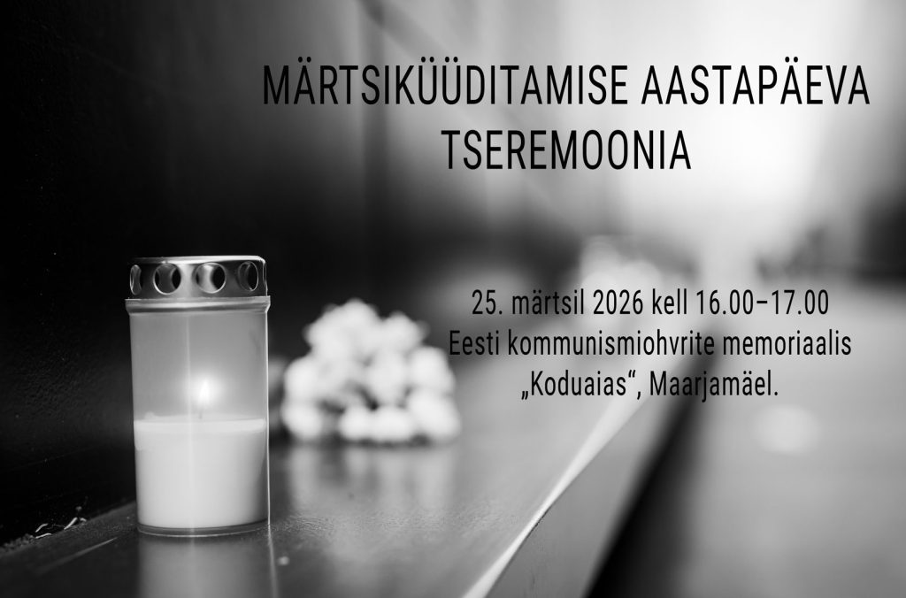 25. märtsil 2026 kell 16.00–17.00 Eesti kommunismiohvrite memoriaalil „Koduaed“ Maarjamäel. Kogunemine alates 15.45.
